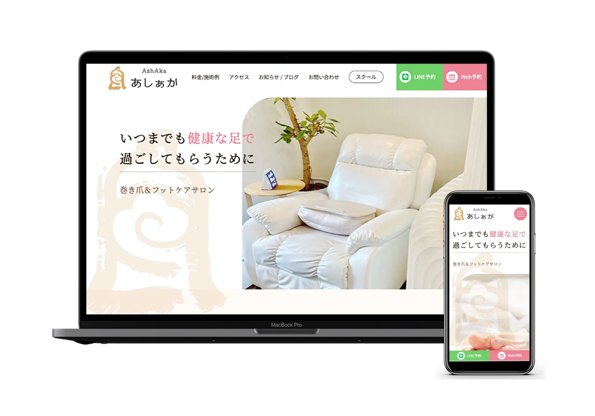 フットケアサロンを経営するあしぁか様のホームページのコーディングを担当しました。