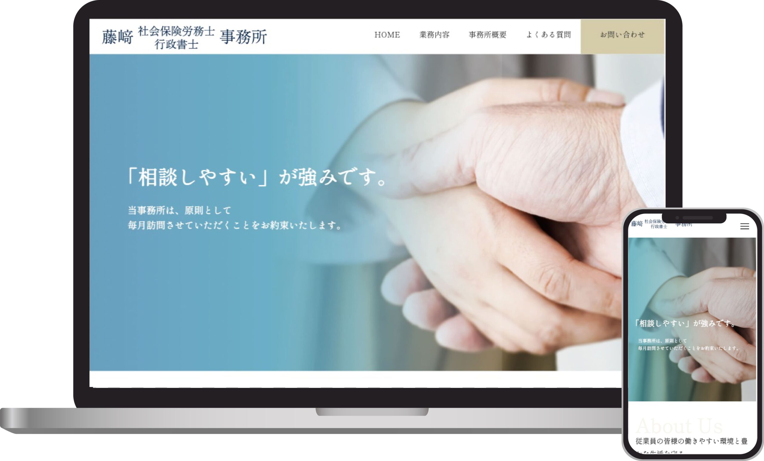 - 社会保険労務士事務所のホームページを制作しました。問い合わせ軽減のためよくある質問ページを設置。また、契約企業向けに毎月発行している「事務所頼り」を多くの方に見ていただけるようお知らせ機能でPDFデータを表示できるよう実装しました。リニューアル後ホームページを見た企業からの問い合わせも徐々に増えてきたとの声もいただきました。納品後の保守、SEO対策も担当しております。